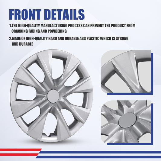 WINJET 15' Hubcaps Wheel Rims Cover for 2009-2019 TOYOTA COROLLA - Silver