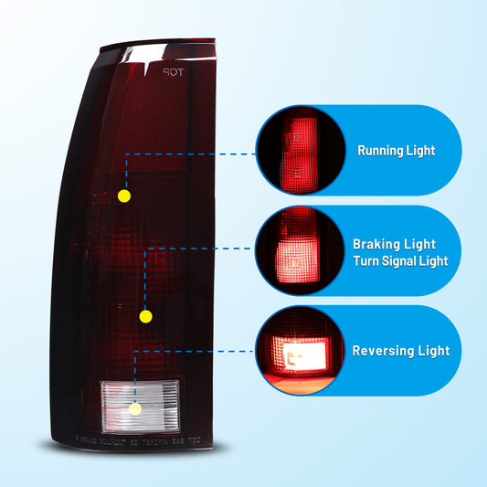 For 1988-1999 Chevy GMC C/K 1500/2500/ 3500 Pickup, 1992-1999 Chevy GMC C/K 1500 2500 Suburban, 1995-2000 Chevy Tahoe, GMC 1988-2000 K3500, 1992-1999 GMC Yukon OEM Tail lights - Chrome / Smoke Red Lens