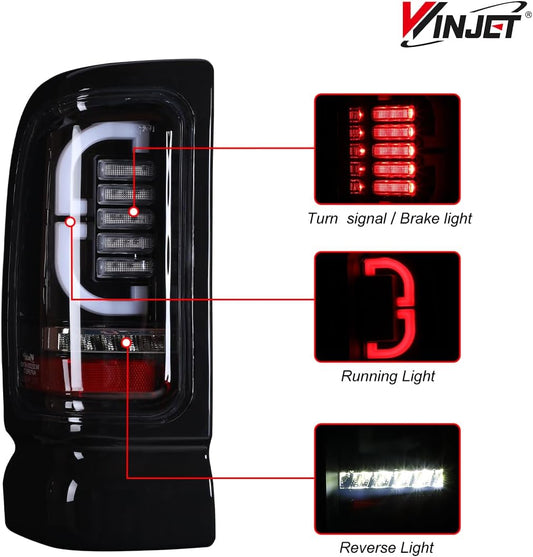 For 1994-2002 Dodge Ram 1500 2500 3500 4000 Pickup LED Taillights - Glossy Black/ Clear