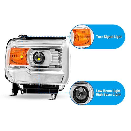 For 2014-2015 GMC Sierra 1500/2015-2019 GMC Sierra 2500 HD /3500 HD Head Lights - Clear