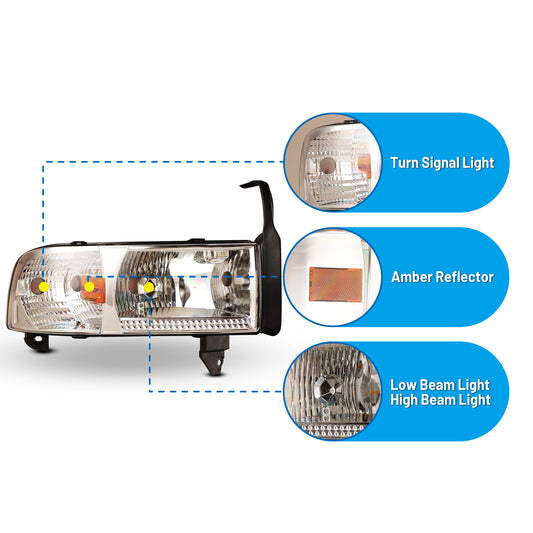 For 1994-2002 Dodge Ram 1500 2500 3500 Head Lights - Clear