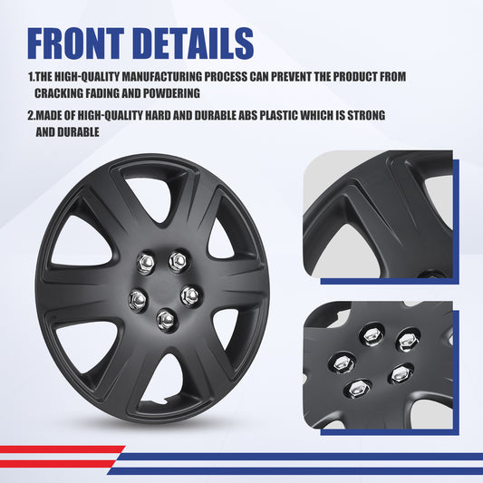 WINJET 15' Hubcaps Wheel Rims Cover for 2005-2008 TOYOTA COROLLA - Matte Black (With Decorative Screws)