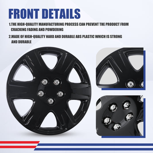 WINJET 15' Hubcaps Wheel Rims Cover for 2005-2008 TOYOTA COROLLA - Black Lacquer
