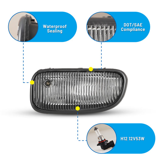 For 1999-2003 Jeep Grand Cherokee Replacement Fog Light Diver Side Only - Clear