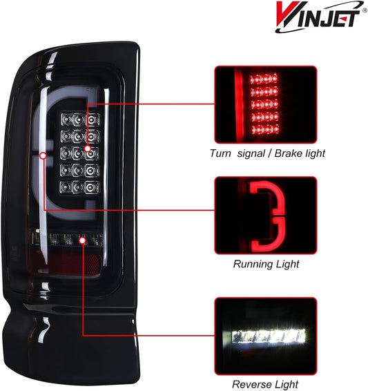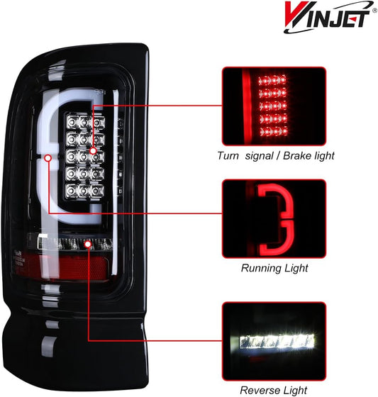 For 1994-2001 Dodge Ram 1500 2500 3500 4500 Pickup Taillights - Black/ Smoke