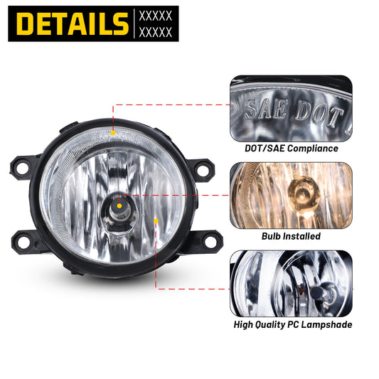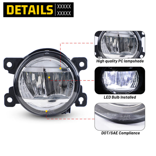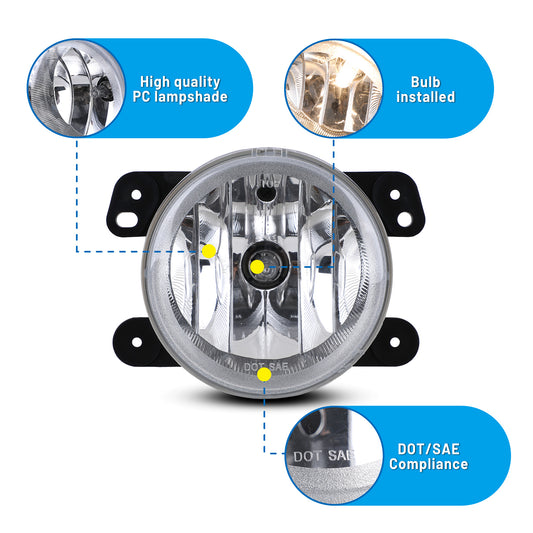 For 2011-2013 Dodge Charger/2010-2020 Dodge Journey/2014-2018 Jeep Cherokee/2011-2013 Jeep Grand Cherokee/2010-2018 Jeep Wrangler Fog Lights - Clear