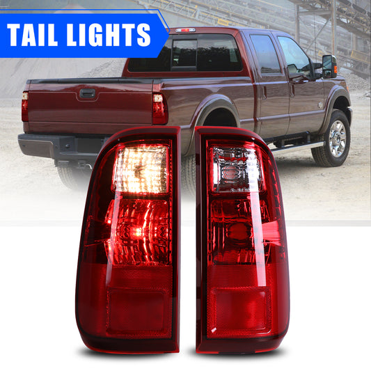 For 2008-2016 Ford F-250/F-350/F-450 Super Duty Tail Lights - Chrome / Red