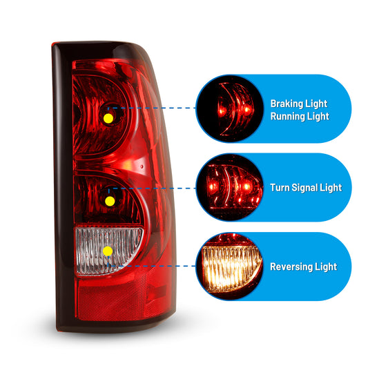 For 2003-2006 Chevy Silverado 1500 2500 3500 HD OE Passenger Side Taillight - Chrome/ Red