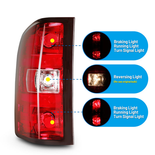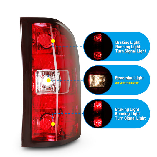 For 2007-2013 Chevy Silverado 1500 2500 3500 Taillights - Chrome/ Red