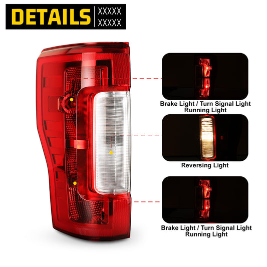 For 2017 2018 2019 Ford F-250 F-350 F-450 Super Duty Halogen Driver Side Taillight - Chrome/ Red
