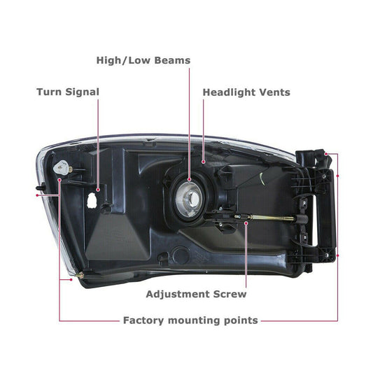 For 2006-2009 Dodge Ram 1500 2500 3500 Headlights - Chrome/ Clear