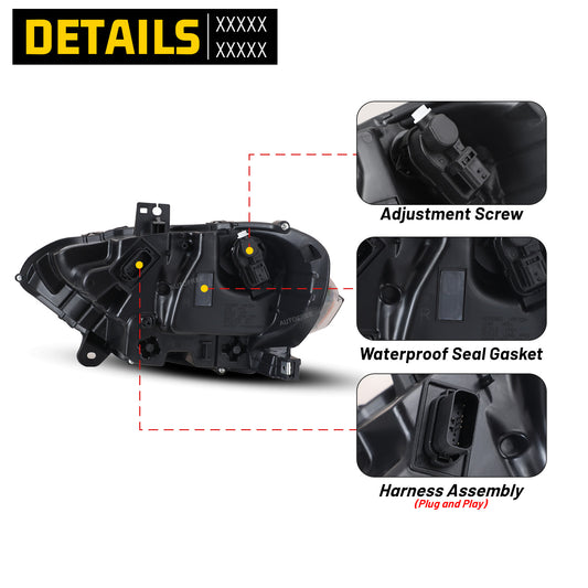 LED Head Lights for 2018-2023 Ford Mustang Coupe & Convertible - Glossy Black/ Clear Lens