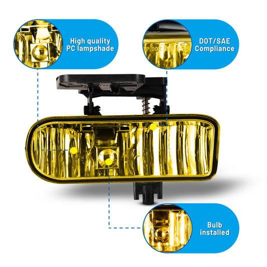 For 1999-2002 GMC Sierra 1500 2500 3500 /2000-2006 GMC Yukon Fog Lights - Yellow