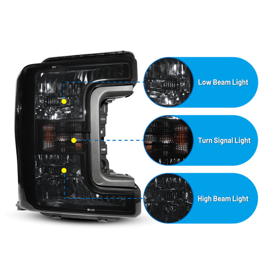 Head Lights for 2017-2019 Ford F-250/ F-350/ F-450/ F-550 Super Duty Halogen Headlight with Reflector Clear and Transparent Black/ Gray Lens
