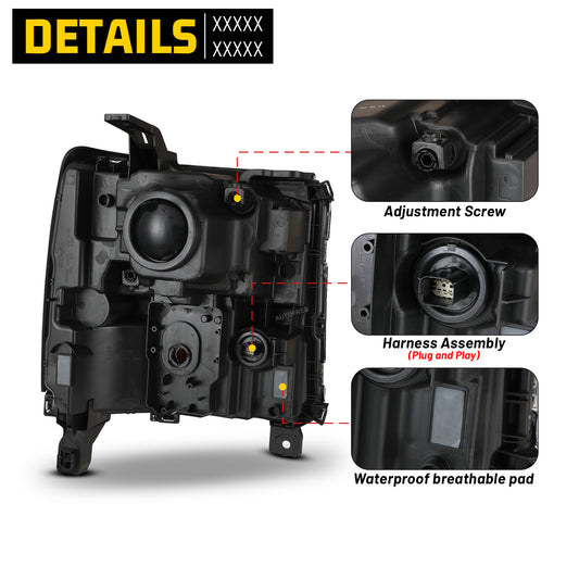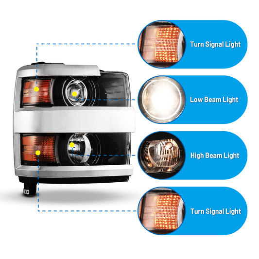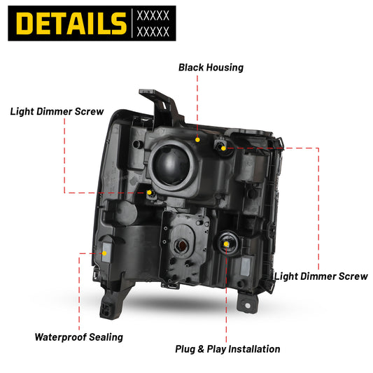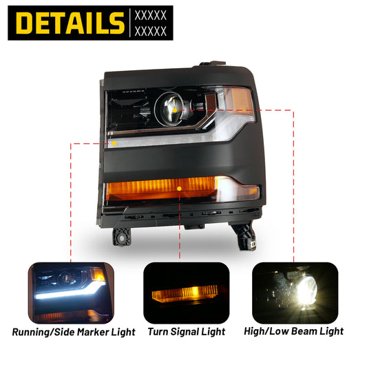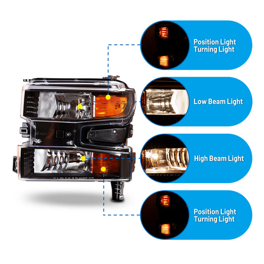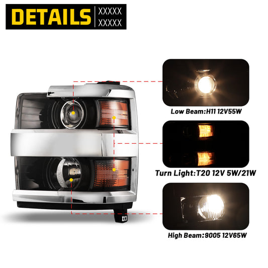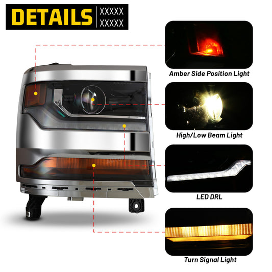 Head Lights for 2016-2018 Chevrolet Silverado 1500 Xenon Headlight OEM Replacement Chevrolet Silverado Chrome Housing