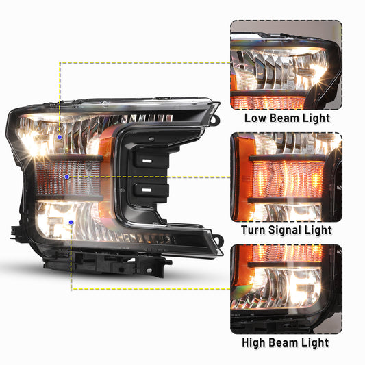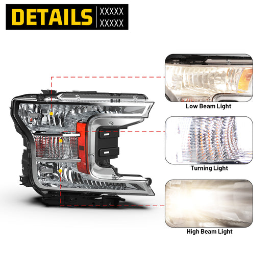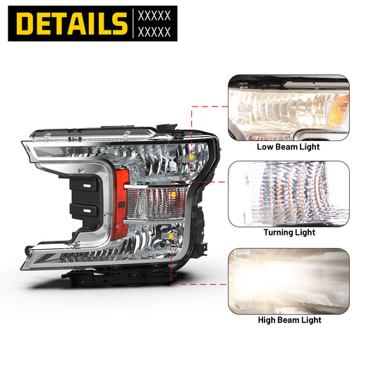 Head Lights for 2018-2020 Ford F-150 with Factory Halogen Headlight Model Only Left Side 1Pcs Clear Lens