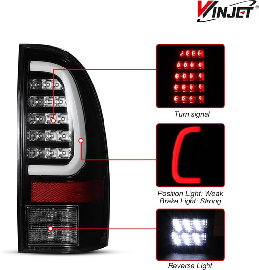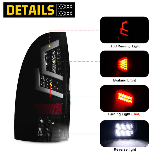For 2005-2015 Toyota Tacoma Tail Lights LED Assembly OEM Replacement - Matte Black / Smoke