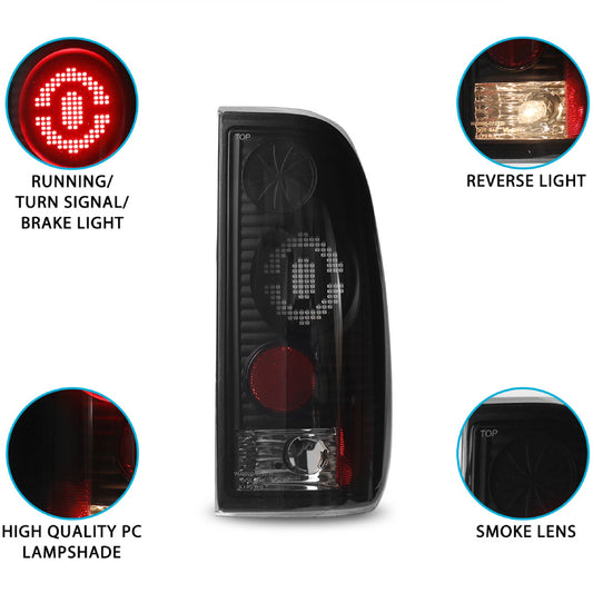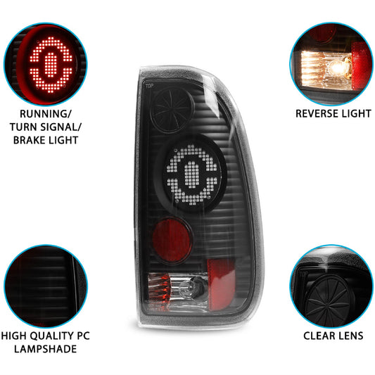 For 1997-2004 Ford F-150/1997-2007 Ford F-250 F-350 F-450 F-550 Super Duty LED Tail Lights - Glossy Black/ Clear