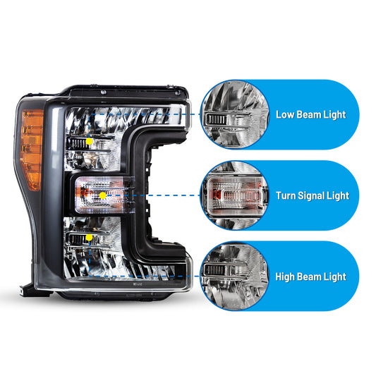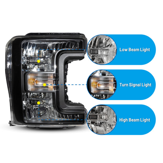 Head Lights for 2017-2019 Ford F-250/ F-350/ F-450/ F-550 Super Duty Halogen H13 Headlight OEM Replacement Ford Matte Black/ Clear Lens
