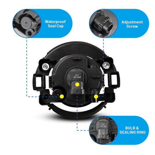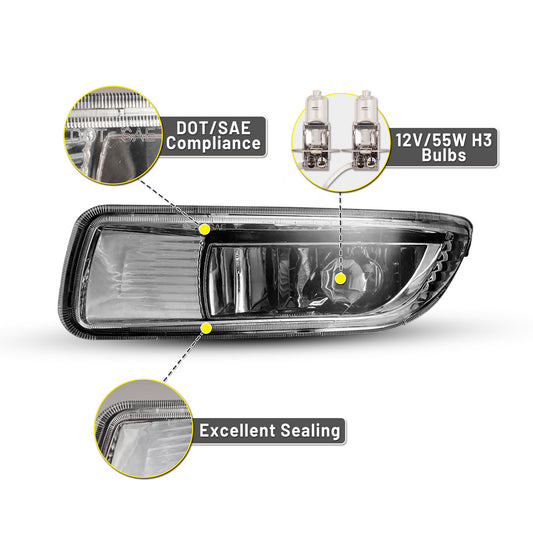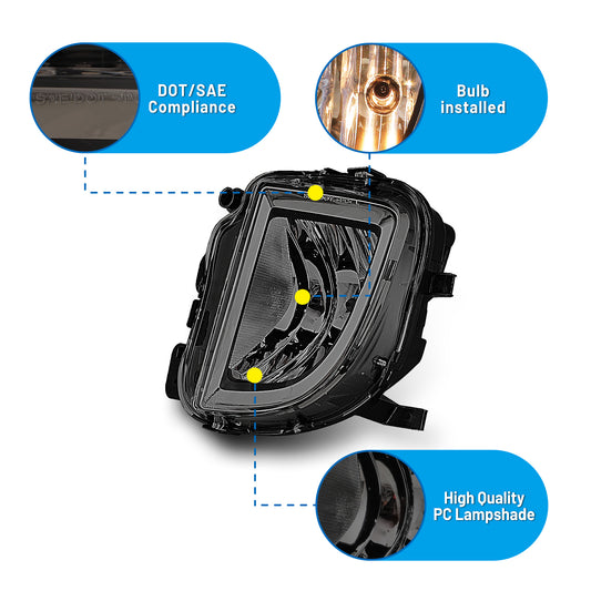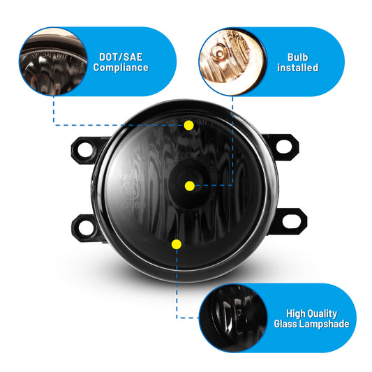For 2013-2015 Lexus GS350/ GS450H 2008-2011 Toyota Highlander 2006 Scion xA Fog Lights OEM Replacement with Halogen H11 Bulbs - Chrome/ Smoke