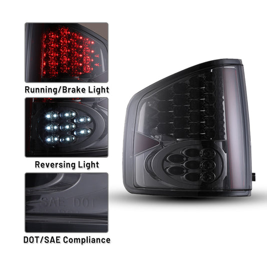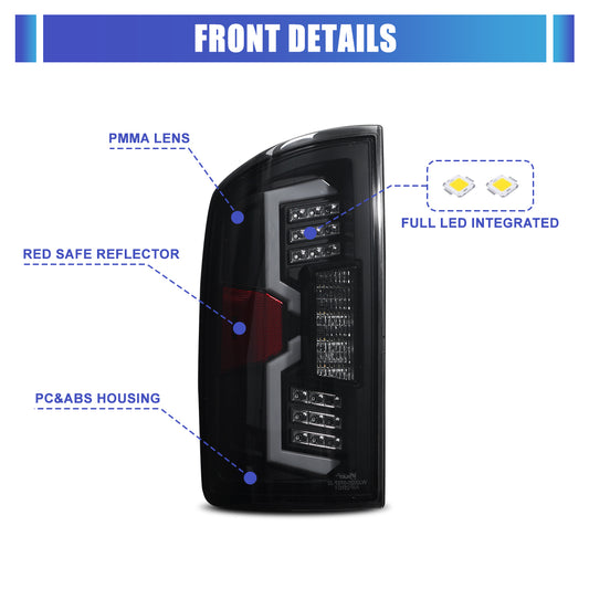 For 2002-2006 Dodge Ram 1500 pickup/2003-2006 Dodge Ram 2500 3500 pickup LED Tail Light - Black/ Smoke