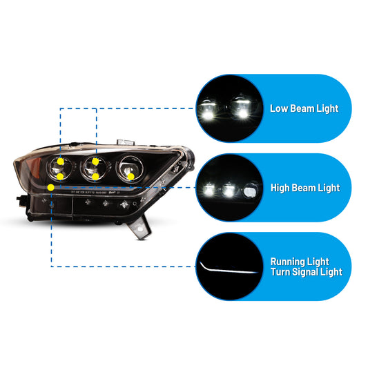 For 2015-2017 Ford Mustang Coupe & Convertible/2016-2020 Ford Mustang Shelby GT350/2020-2022 Ford Mustang Shelby GT500 Sequentail Head light - Glossey Black/Clear