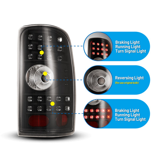 For 2000-2006 Chevy Suburban 1500 2500/Chevy Tahoe/GMC Yukon LED Tail Light - Black/Clear