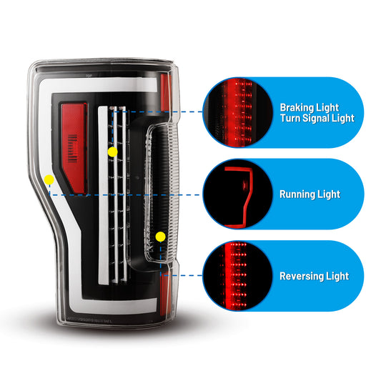For 2017-2019 Ford F-250 / F-350 / F-450 Super Duty LED Sequential Tail lights - Black/Clear