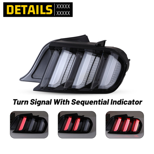 For 2015-2023 Ford Mustang Coupe & Convertible/2016-2020 Ford Mustang Shelby GT350/2020-2023 Ford Mustang Shelby GT500 Sequential LED Tail Light - Glossy Black / Clear