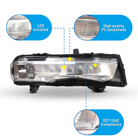 For 2009-2012 Audi A4/2007-2011 Audi A5/2012-2018 Audi A6/2015 Audi Q3/2008-2012 Audi S5/2013-2018 Audi S6/2008-2012 Volkswagen CC Fog Lights - Clear