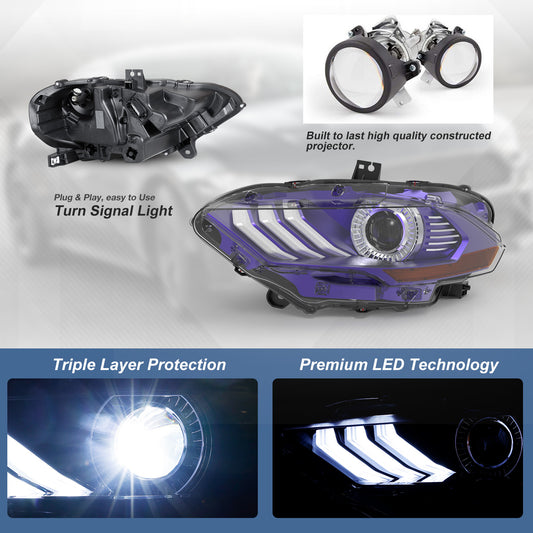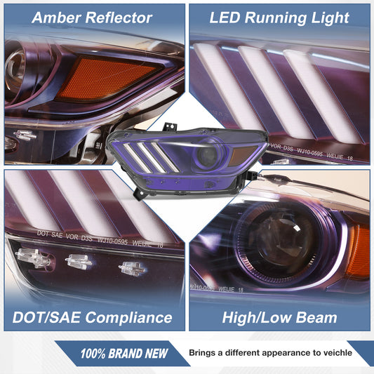 Faros delanteros LED para Ford Mustang Coupe & Convertible 2015-2017/Ford Shelby GT350 2016-2020/Ford Shelby GT500 2020-2022 - Azul/Púrpura