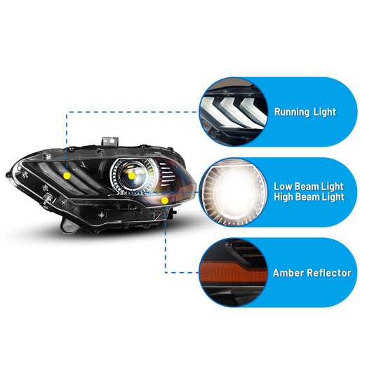 Faros delanteros LED para Ford Mustang Coupe y Convertible 2018-2023 solo Faros delanteros izquierdo para Ford Mustang Coupe y Convertible Lente negra brillante/transparente