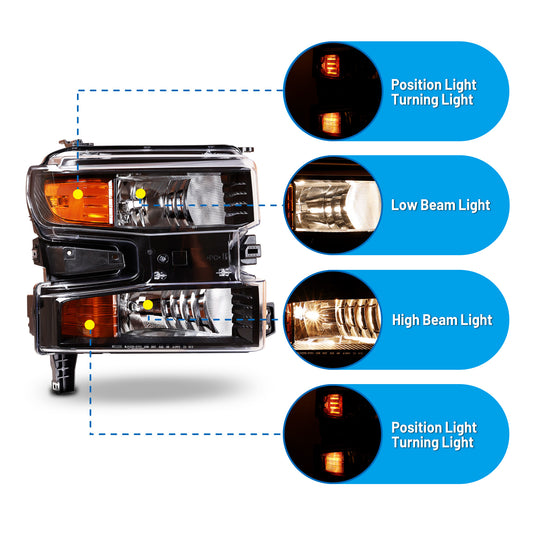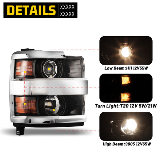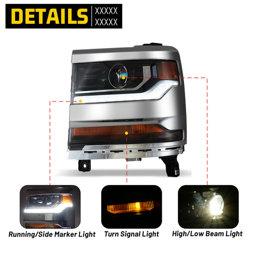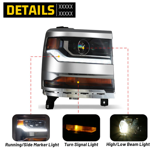 Faros delanteros para Chevrolet Silverado 1500 2016-2018, conjunto de faros delanteros izquierdo de xenón, carcasa cromada Chevrolet Silverado
