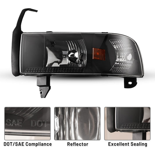 Faros delanteros Dodge RAM 1500 2500 3500 1994-2002, negro/transparente