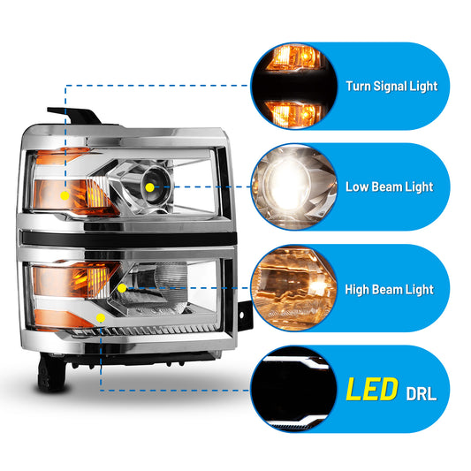 Luces delanteras Chevrolet Silverado 1500 2014-2015, cromadas/transparentes