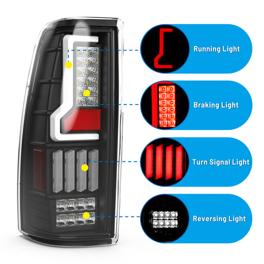 1999-2007 Chevy Silverado 1500 2500 3500/1999-2002 GMC Sierra 1500 2500 3500 Luces traseras LED - Negro/Transparente