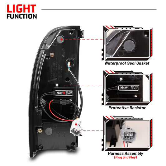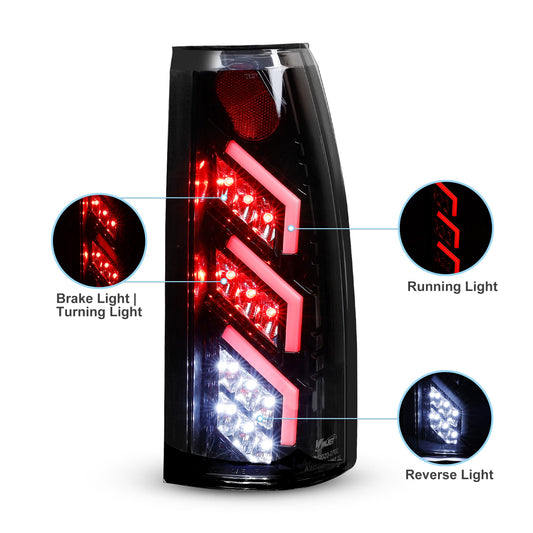 Chevrolet 1988-1998 CK/1992-1994 Blazer/1992-1999 Suburban/1995-1999 Tahoe, GMC 1988-1998 CK/1992-1999 Yukon, Cadillac 1999-2000 Escalade Luz trasera LED - Negro brillante/transparente