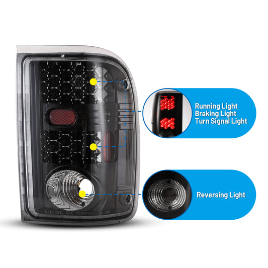 Luces traseras LED Ford Ranger 2001-2005 - Negro brillante / Transparente