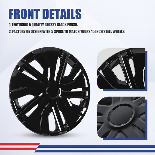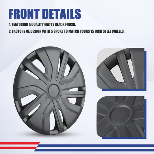 WINJET 15' Hubcaps Wheel Rims Cover for 2007-2025 NISSAN VERSA - Matte Balck
