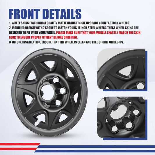 WINJET 17' Hubcaps Wheel Rims Cover for 2014-2019 Chevy Silverado and GMC Sierra - Matte Black