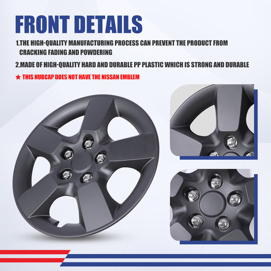WINJET 16' Hubcaps Wheel Rims Cover for 2008-2015 NISSAN ROGUE/ROGUE SELECT - Matte Black (With Decorative Screws)