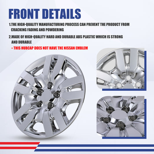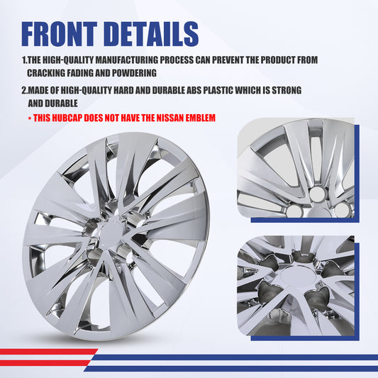 WINJET 16' Hubcaps Wheel Rims Cover for 2007-2012 Nissan Altima/2008-2009 Nissan Altima Coupe - Chrome
