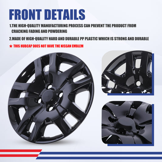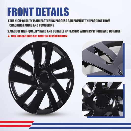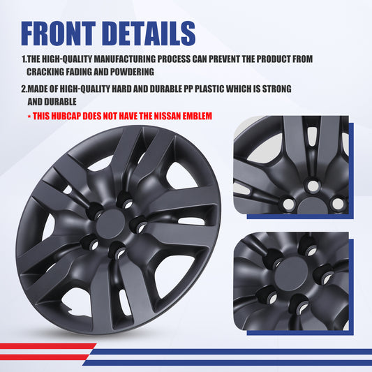 WINJET 16' Hubcaps Wheel Rims Cover for 2013-2019 NISSAN SENTRA/2011-2017 NISSAN LEAF - Matte Black