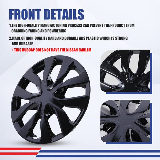 WINJET 17' Hubcaps Wheel Rims Cover for 2014-2020 NISSAN ROGUE - Black Lacquer