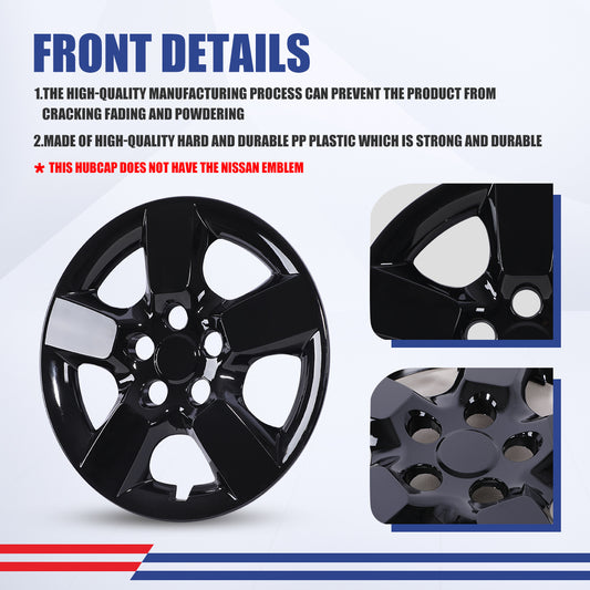 WINJET 16' Hubcaps Wheel Rims Cover for 2008-2015 NISSAN ROGUE/ROGUE SELECT - Black Lacquer
