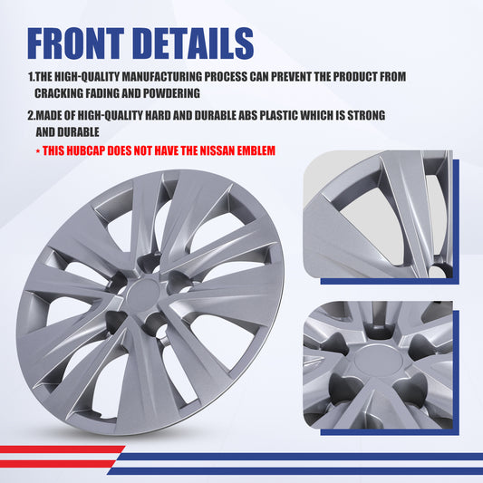 WINJET 16' Hubcaps Wheel Rims Cover for 2007-2012 Nissan Altima/2008-2009 Nissan Altima Coupe - Sliver