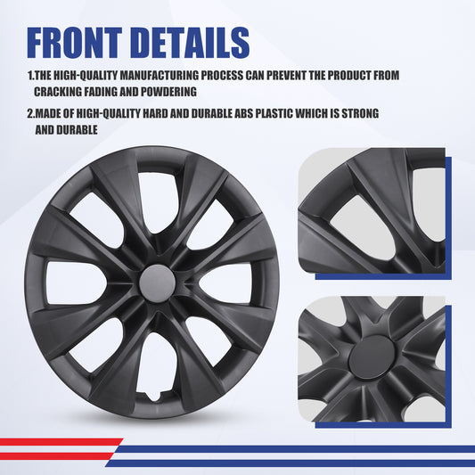 WINJET 15' Hubcaps Wheel Rims Cover for 2017-2020 Hyundai Elantra Sedan - Matte Black