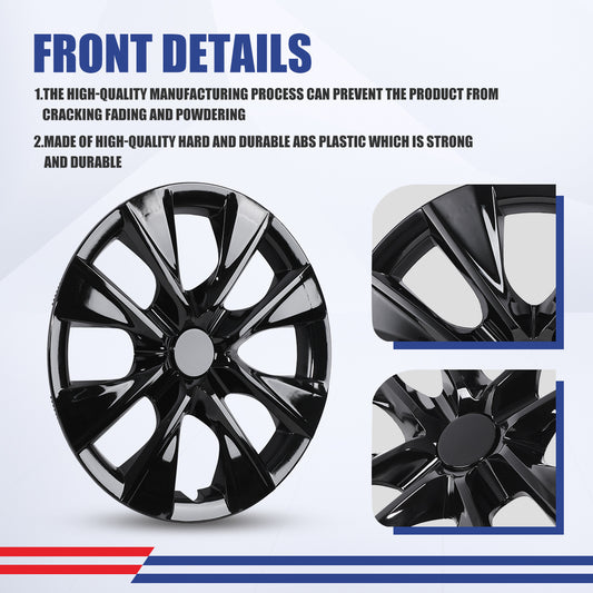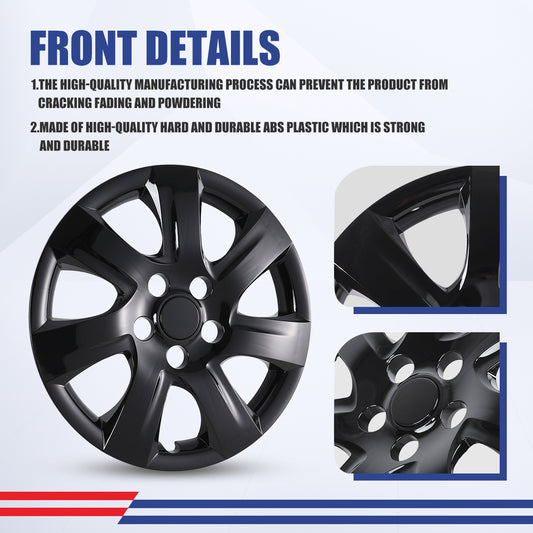 WINJET 15' Hubcaps Wheel Rims Cover for 2009-2019 TOYOTA COROLLA - Black Lacquer