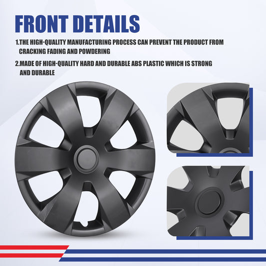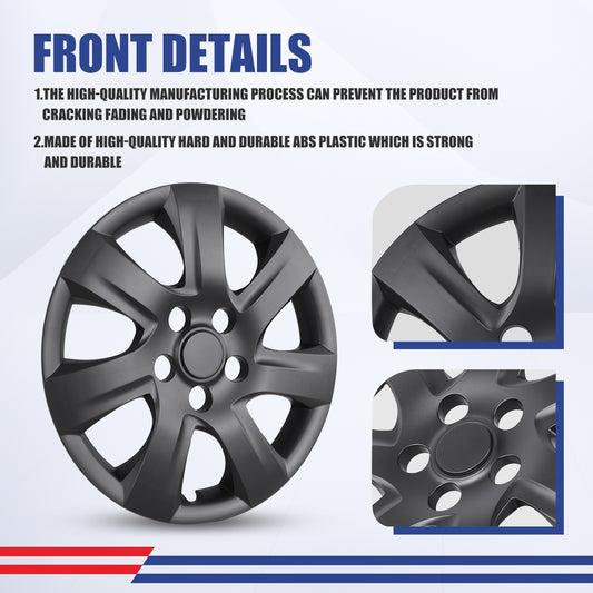 WINJET 15' Hubcaps Wheel Rims Cover for 2009-2019 TOYOTA COROLLA - Matte Black