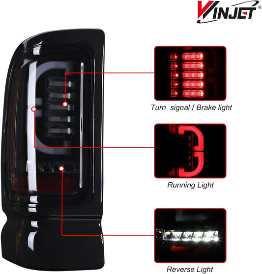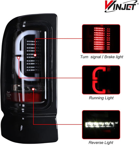 For 1994-2002 Dodge Ram 1500 2500 3500 4000 Pickup LED Taillights - Black/Smoke